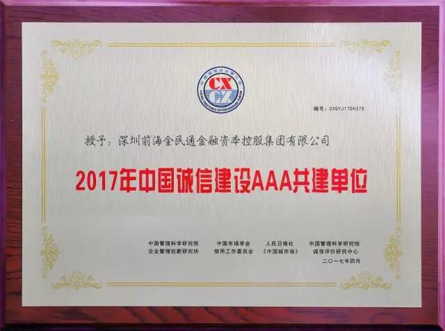 榮獲“2017年中國誠信建設(shè)AAA共建單位”!