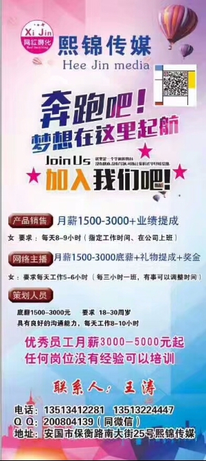 熙錦傳媒是產(chǎn)品銷售以及網(wǎng)絡(luò)直播實(shí)力公司,用實(shí)力打造熱愛直播群眾們的價(jià)值神態(tài),組建先鋒團(tuán)隊(duì),專業(yè)輔助一些熱愛直播的年輕人,提供一種新穎的直播方式,商業(yè)對(duì)接,個(gè)人包裝等,直接添加好友