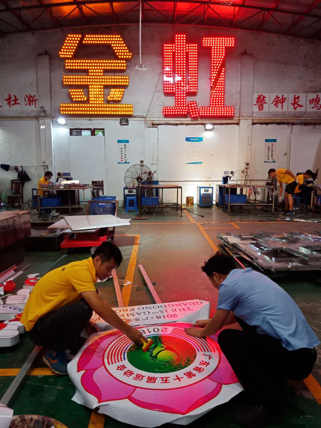 肇慶市金虹廣告標(biāo)識制品有限公司06年成立于肇慶,經(jīng)過14年的辛勤耕耘,現(xiàn)已是一家專業(yè)大型的集廣告金屬字系列、LED發(fā)光字系列、吸塑系列、有機(jī)亞克力系列、標(biāo)牌工藝系列、戶外亮化工程系列、戶外廣告招牌工程(鋼結(jié)構(gòu)工程、數(shù)碼噴繪、全彩印刷),于一體的專業(yè)制造生產(chǎn)企業(yè)。