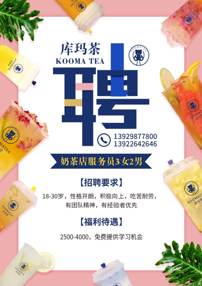 奶茶店店員:年齡18-30,3男2女。每天工作8小時(shí),有餐補(bǔ),輪班制。每月休4天