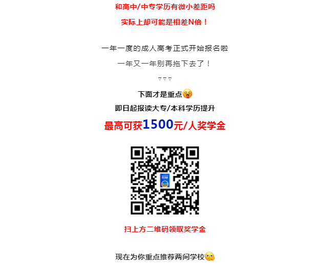快搶!報(bào)考大專/本科學(xué)歷,最高專享獎(jiǎng)學(xué)金1500元/人!!!