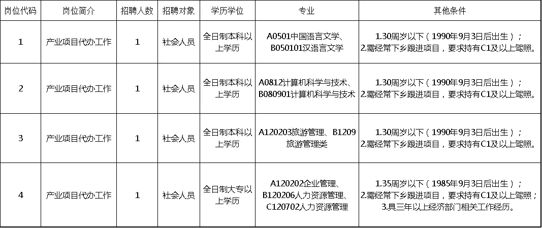 本次共招聘專項(xiàng)工作隊(duì)員4名。招聘崗位條件如下: