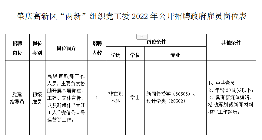 3、報名方法:采取現(xiàn)場報名形式進(jìn)行。報考人員須持《肇慶高新區(qū)“兩新”組織黨工委2022年公開招聘政府雇員報名表》(附件2),并攜帶本人身份證、學(xué)歷學(xué)位證書、工作經(jīng)歷證明等原件及復(fù)印件,以及本人大一寸同底彩色免冠近照1張(用于貼報名表)到報名地點辦理報名手續(xù)(除《肇慶高新區(qū) “兩新”組織黨工委2022年公開招聘政府雇員報名表》(附件2)外,其他證件、證明要求提供原件和復(fù)印件,驗原件收復(fù)印件)。本次招聘考試無需繳納報名考務(wù)費(fèi)。聯(lián)系人:梁先生,聯(lián)系電話:0758-3641989/聯(lián)系人:曾先生,聯(lián)系電話:0758-3135356。