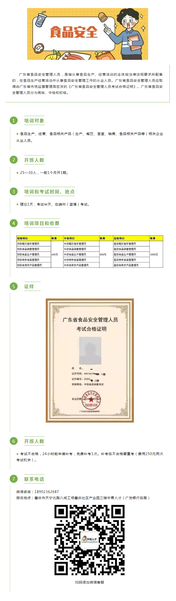 肇慶食品安全管理人員開考啦!理論培訓(xùn)考試,免費(fèi)補(bǔ)考1次,快來(lái)報(bào)名!