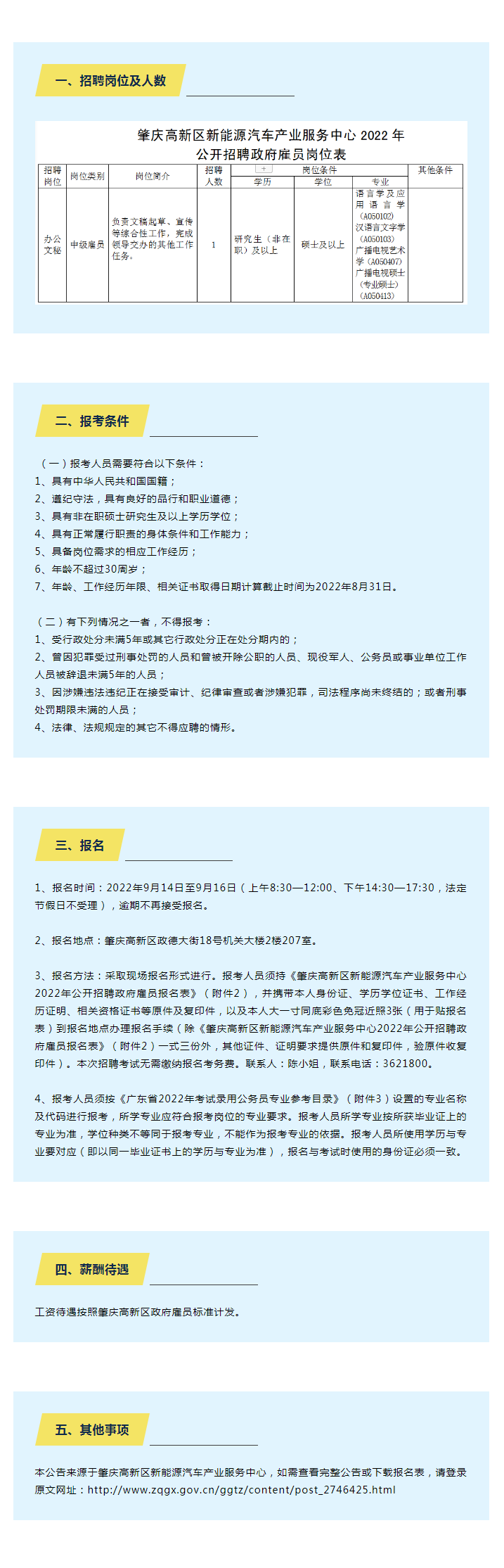 肇慶高新區(qū)新能源汽車(chē)產(chǎn)業(yè)服務(wù)中心2022年公開(kāi)招聘政府雇員公告