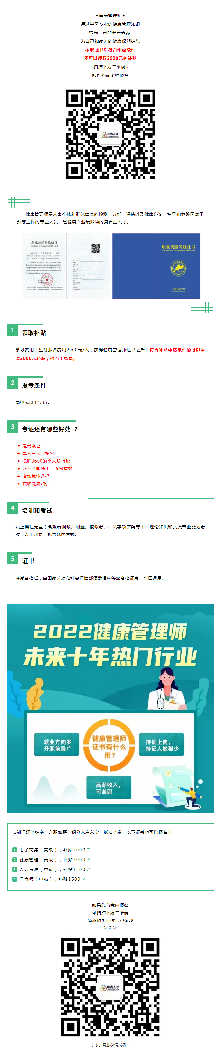 補貼2000元!9月22日前報名并交資料,0基礎(chǔ)也能報!健康管理師報名開啟!