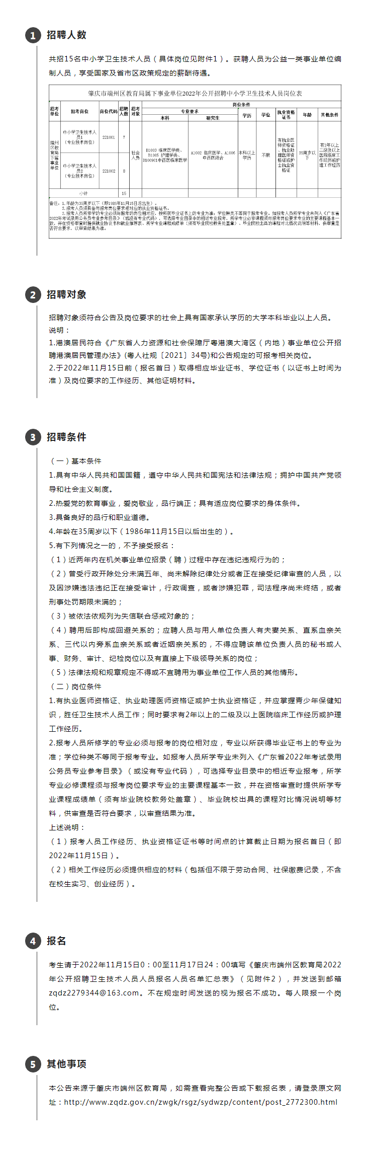 肇慶市端州區(qū)教育局下屬事業(yè)單位2022年公開招聘衛(wèi)生技術人員公告