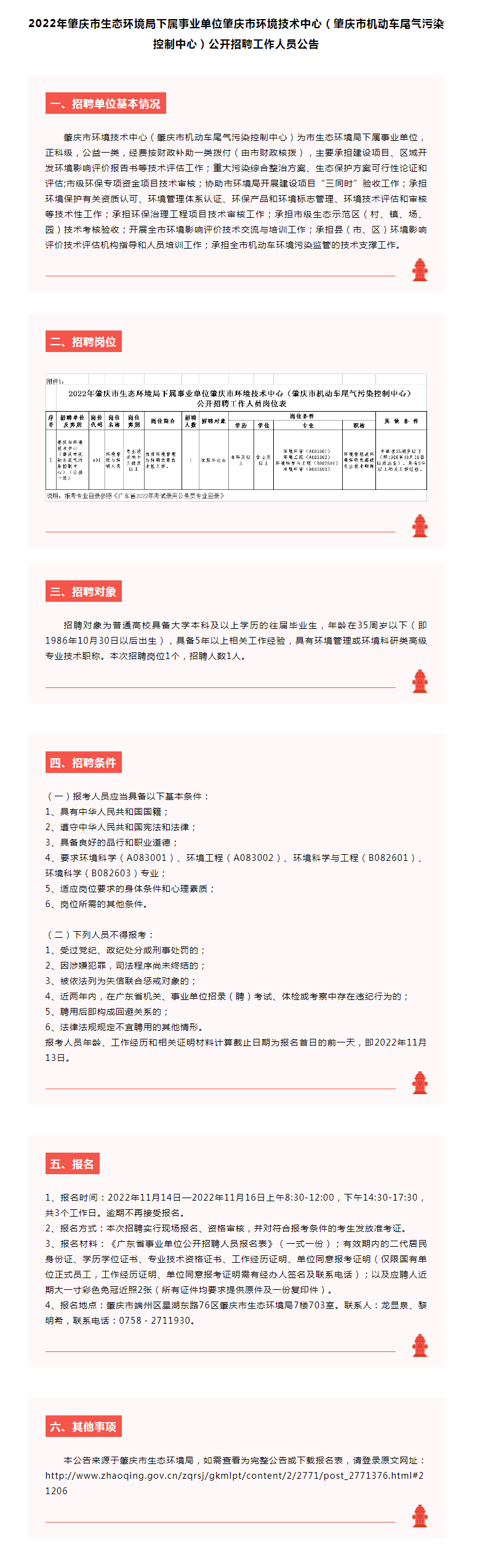 2022年肇慶市生態(tài)環(huán)境局下屬事業(yè)單位肇慶市環(huán)境技術(shù)中心公開(kāi)招聘工作人員公告