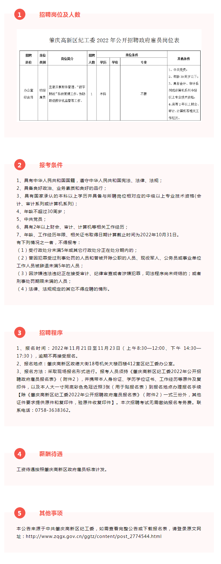肇慶高新區(qū)紀工委2022年公開招聘政府雇員公告