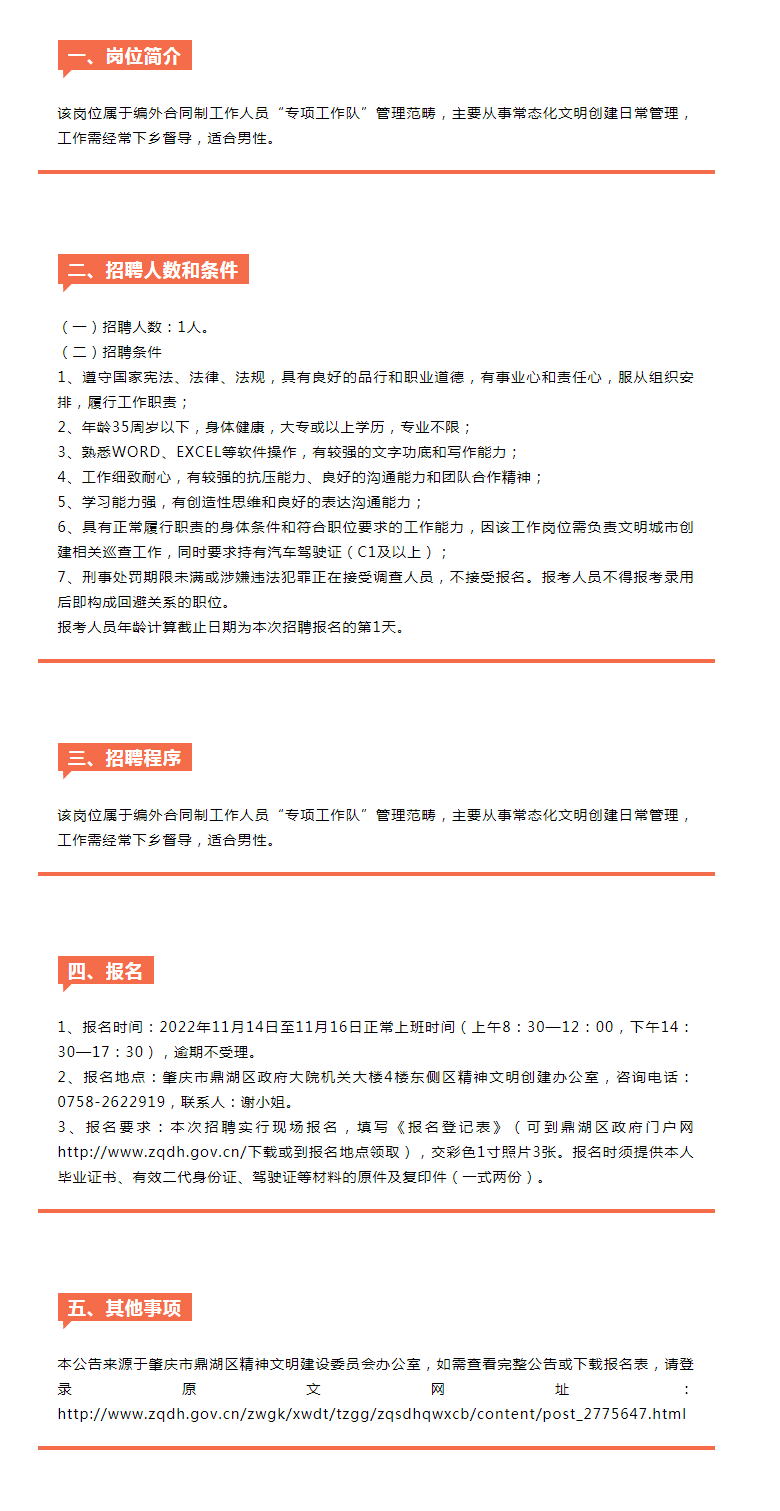 肇慶市鼎湖區(qū)文明辦工作人員招聘公告