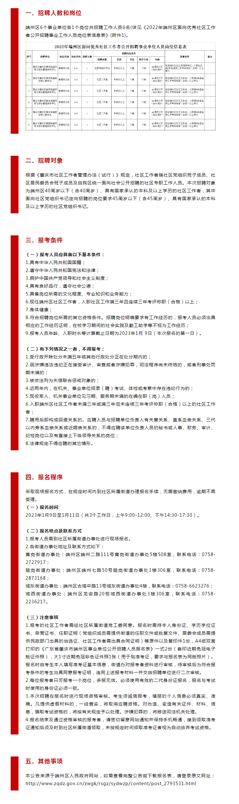 肇慶市端州區(qū)2022年面向優(yōu)秀社區(qū)工作者公開招聘事業(yè)單位工作人員公告